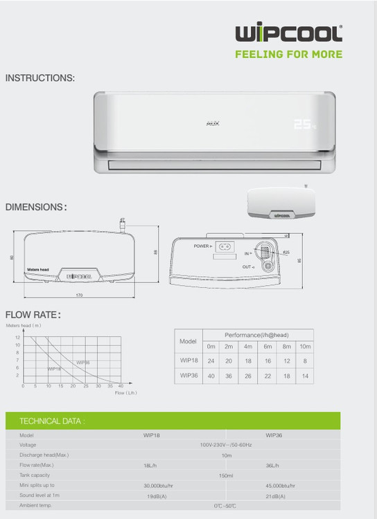پمپ درین WIPCOOL – تخلیه اتوماتیک آب کندانس کولر گازی و فنکویل